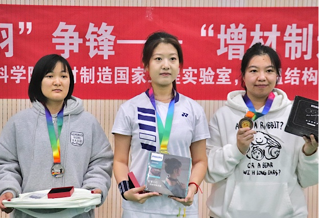首先进行了团体比赛,老师和学生分组对战,精彩纷呈,观众们热情高涨,频频欢呼,为比赛加油呐喊,最终高温涂层实验室赢得团体赛胜利。单项赛随后在6个场地上演精彩对决,经过激烈角逐,李圳、文雨分别夺得男单、女单比赛冠军,刘冬瑞、杨晨组合和郭奕谦、潘楚月组合分别获得男双、女双比赛冠军,刘冬瑞、郭奕谦组合获得混双比赛冠军。