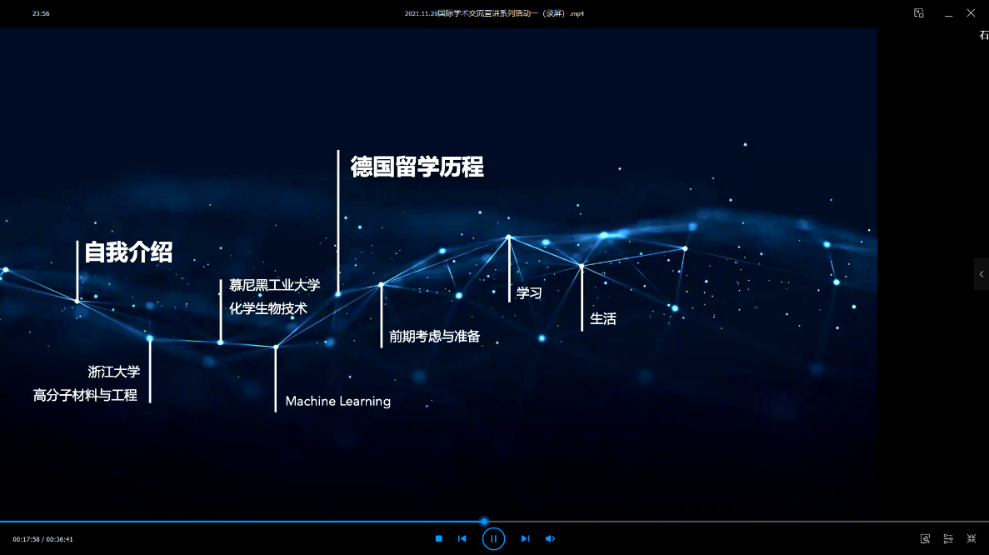 (通讯员:郑锐)2021年11月20日傍晚6点,材料学院国际学术宣讲会在四号楼205成功举办。本次宣讲会邀请到本科毕业于浙江大学高分子与科学工程学系,目前就读于德国慕尼黑大学的张雨琪为同学们传授国外科研学习经验并对留学经历加以分享。
